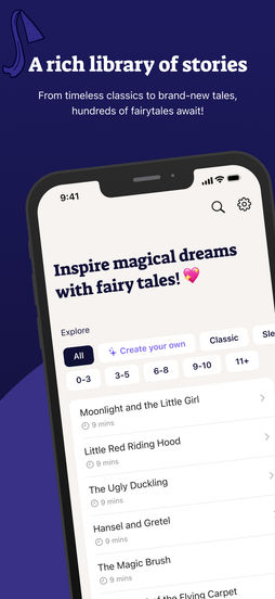 Save your child’s favorite stories and create a personal bedtime book collection, right inside the app. Revisit magical adventures again and again.